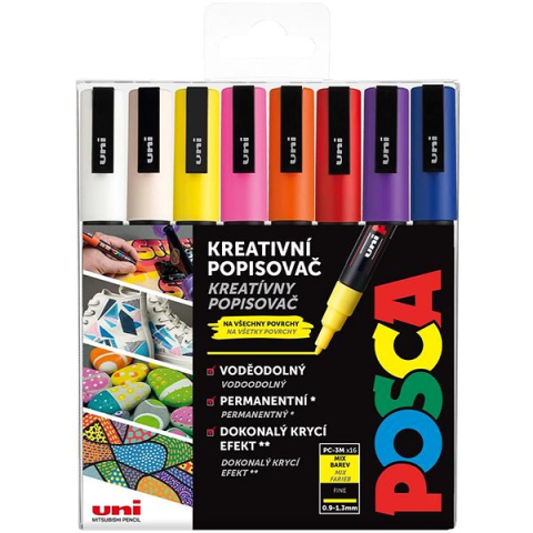 Marker - alkalmas papír és műanyag felületekre, akril, vízálló, kerek heggyel, vonalvastagság 0,9 mm, kerek markolat, 8 marker a csomagban A kedvelt UNI Posca 3M Filctoll készlet, 16 db termék legfontosabb előnyei A nagyszerű UNI Stationery markerek mindegyike kiváló megoldás, ha írnál vagy rajzolnál Kerek alak a jó fogás érdekében Erős