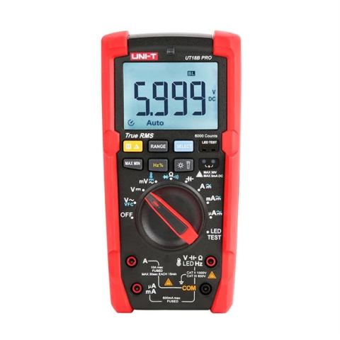 Az UT18B PRO 1000 V True RMS digitális multiméter egy rendkívül megbízható, biztonságos és tartós multiméter, amely valós RMS értékeket mér, és CAT II 1000 V / CAT III 600 V elosztóberendezésekben is használható. Az UT18B PRO True RMS digitális multiméter