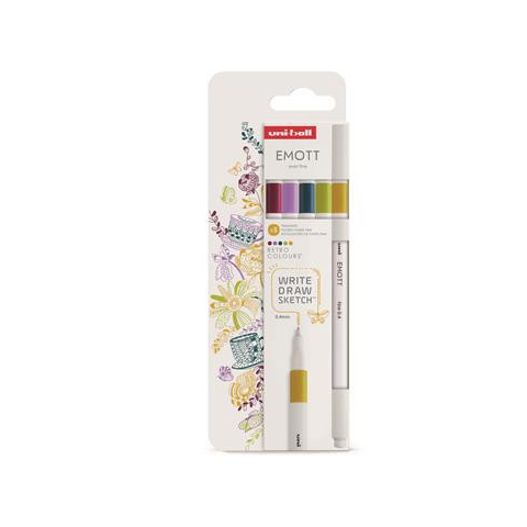 1 kép UNI Tűfilc készlet, 0,4 mm, UNI Emott Retro, 5 különböző szín (TURETRO5)