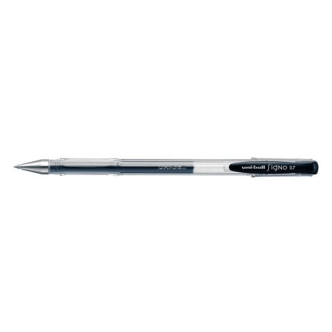 ZSELÉS TOLL 0,5MM UM-100 FEKETE UNI Rozsdamentes acél hegyű, átlátszó testű, nagy betétes, a tinta színével megegyező klipszű zselés toll. Jellegzetesen lágy, fényes írásmóddal, víz és UV-álló tintával, nagy színválasztékban. Írásvastagság: 0,3 mm. Bet