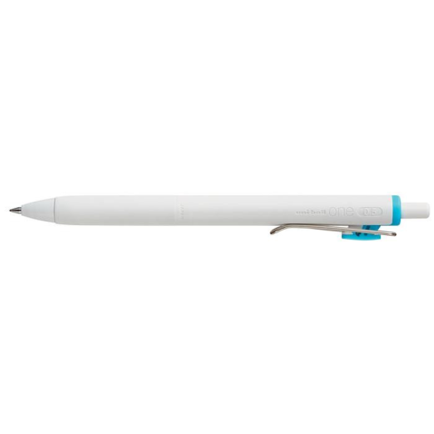 Zseléstoll, 0,25 mm, nyomógombos, UNI Uni-ball one, égkék Az uni-ball one zseléstoll újonnan kifejlesztett tintával, kiemelkedően szép, egyszerű és áramvonalas megjelenéssel rendelkezik. -az ovális formájú, nyitott fém klip kifinomult megjelenést és s