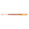 Zseléstoll UNI UM-120SP 1 mm narancs Az újonnan kifejlesztett csillámos tinta ragyogó írást tesz lehetővé mind színes, mind fehér papíron. A csillámos szilánkok számát növeltük az uni-ball Signo Rainbow-hoz képest. A húzott vonalak sokkal fényesebbek,