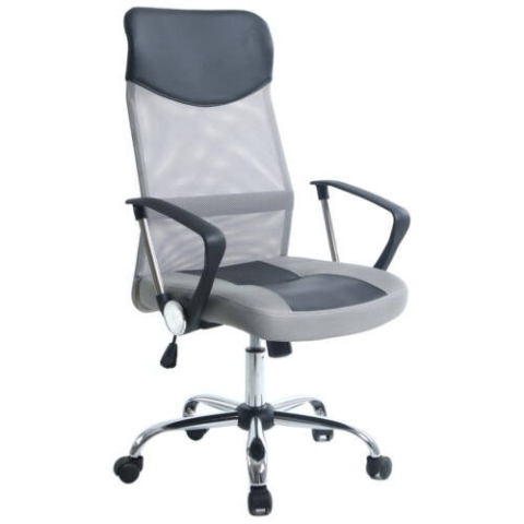 Magas háttámlás, króm csillaglábbal ellátott, karfás, kényelmes irodai forgószék. Az ülőfelület műbőr kárpitozású, a háttámla hálós mesh textil kialakítású. Az ergonomikus háttámla kialakítás miatt kényelmes használatot biztosít. Gázliftes megasság állítás és hintamechanika.