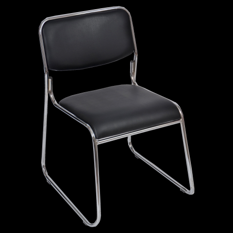 Fekete színű, króm vázas, szánkótalpas, kényelmes tárgyalószék, PU kárpitozással az ülőlapon és a háttámlán. Könnyen rakásolható. Mérete: 40x76x43cm.
