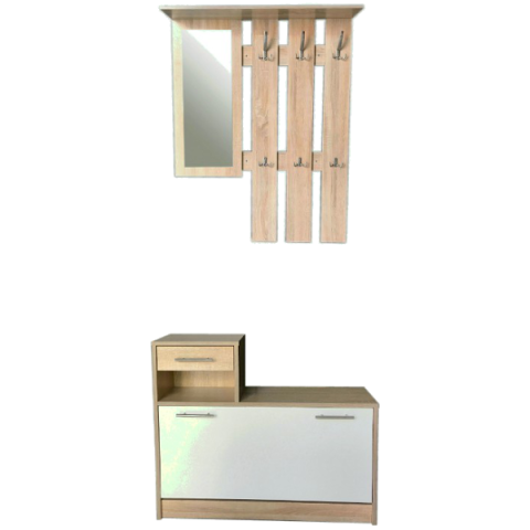 1 kép Unic Spot FILIO TÜKRÖS ELŐSZOBAFAL FEHÉR/TÖLGY 90X24X75CM/90X22X116CM