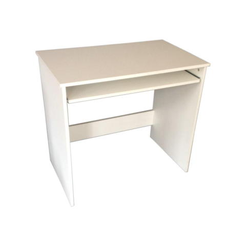 Ivett számítógépasztal, fehér - Egy praktikus számítógépasztal, a klaviatúra számára kialakított kihúzható polccal, fehér színű MDF felületekkel, egyszerű vonalakkal. Mérete mindössze 80x48x73 cm, így kisebb lakásokban vagy irodákban is jól használható. Az asztal terhelhetősége: 25 kg.