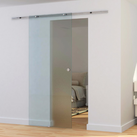 Savmart üveg tolóajtó, nyitott alumínium sín. Mérete 2050x850x8 mm.