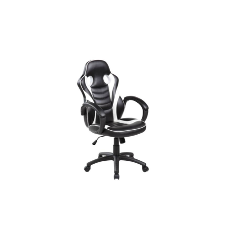 Kényelmes Forgószék Fekete-Fehér Színben: Versenyautó Stílusú Irodai Szék 🏎️ Ez a modern, fekete-fehér forgószék tökéletes választás az irodába vagy a otthoni dolgozó sarokba.  A sportos, versenyautó üléseket idéző dizájnnal stílusos és kényelmes munk...