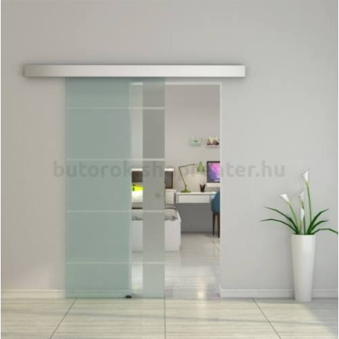 Az üvegajtó 200x90 cm-es ajtónyíláshoz javasolt. A termék a felső, fő teherviselőként is funkcionáló tartó sínen kívül alsó sínnel nem rendelkezik. Alul néhány centiméteres, műanyag kilengés g