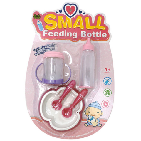 Gyermeked játékbabáinak számára ezúttal egy kiváló minőségű etető készletet szerezhetsz be amelynek segítségével egy szempillantás alatt megetetheti kedvenc játékbabáját. A szettben két különböző féle cumisüveget, tányért és evőeszközt is találhatsz amelyek segítségével változatosan etetheti meg gyermeked kedvenc babáját. A szett 100%-ban káros anyag mentes mű