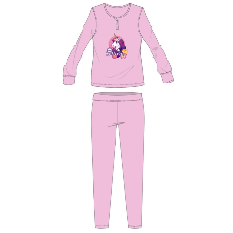 Unikornis téli pizsama gyerekeknek 100% pamut alapanyagból. Kényelmes bőrbarát viselet. Gombos nyakkialakítással, gumírozott derékrésszel, egyenes, szűkített szárral, Unikornis mintával. Méret: 116 Díszdobozban szállítjuk.