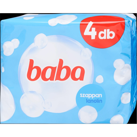 Baba szappan 4X90g (12csg/karton) A Baba szappan 4X90g (12csg/karton) a Baba márka egyik legismertebb terméke. Több mint száz éve nyújt gyengéd ápolást az egész család számára.Űrtartalom: 4 darab, mindegyik 90 gramm.Illat: A Baba szappan finom illatú,