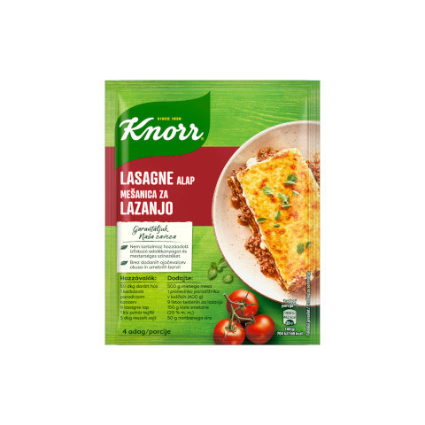 Knorr alap Lasagne 52g A Knorr alap Lasagne 52 g egy praktikus és ízletes szószalap, amely segít gyorsan és egyszerűen elkészíteni a lasagne-t. A porból készíthető krémes, bechamel-szerű réteg és a gazdag paradicsomos íz gondoskodik a profi eredményr