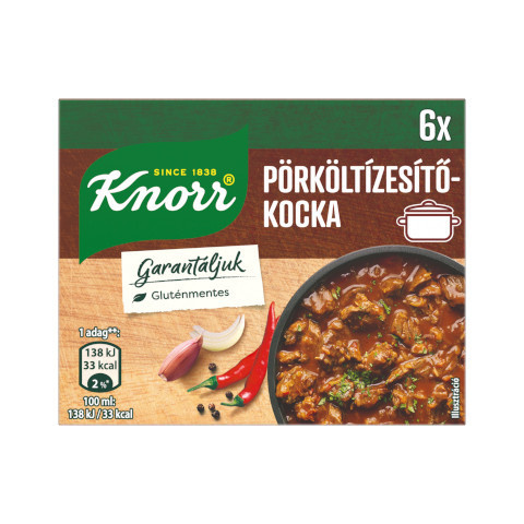 Knorr kocka 60 g Pörköltízesítő Gazdag, klasszikus pörkölt íz könnyen elérhetővé válik egyetlen kocka segítségével. A 60 g-os kiszerelés praktikus a konyhában, és gyorsan ízesíti a húsos egytálételeket. Ideális választás, ha gyorsan és finoman szeret