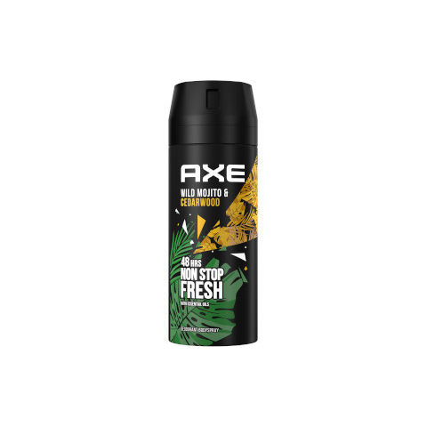 Axe Deodorant Spray 150 ml – Wild Green Mojito & Cedarwood Főbb jellemzők Friss és magabiztos illat – a Wild Green Mojito & Cedarwood kombinációja élénk lime, mentolos frissesség és meleg, fás cédrus jegyekkel. Hosszan tartó frissesség – hosszú