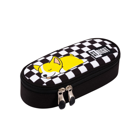 A St.Right Álmos kutyus fekete ovális tolltartó 23cm-es méretben tökéletes választás minden kis és nagy diák számára, akik szeretik a cuki és praktikus iskolai kiegészítőket. Ez a tolltartó stílusos fekete-fehér kockás mintával és egy aranyos, alvó kutyus grafikával díszített, ami biztosan mosolyt csal a gyerekek arcára minden nap.