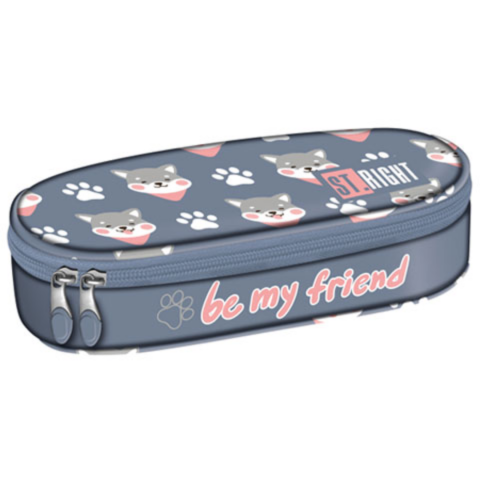 Az idősebb diáklányok már nem a több szintes, színesekkel telepakolt, hercegnőkkel díszített tolltartókat részesítik előnyben, hanem olyan praktikus, és visszafogott, de mégis csajos darabokat, mint ez a kutyás és tappancsos mintával, valamint rózsaszín "be my friend" felirattal ellátott darabok. Ovális kialakításnak köszönhetően rengeteg írószer elfér benne, melyek köz