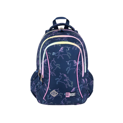 Az St.Right Dream unikornisos iskolatáska egy igazi álom minden kisiskolás számára, akik rajonganak az unikornisokért! Ez a háromrekeszes hátizsák tökéletes választás az iskolai napokra, hiszen nemcsak gyönyörű, de rendkívül praktikus is. Az éjfekete alapszínű táska színes unikornis mintákkal van díszítve, ami különleges és vidám megjele
