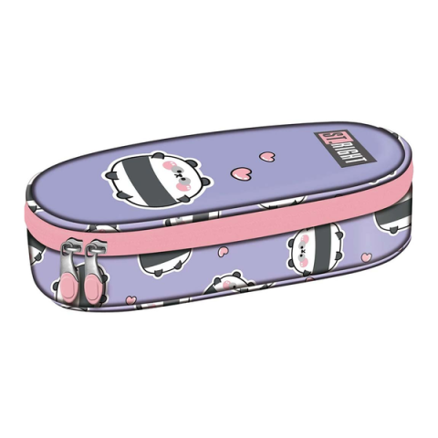 Ez a tolltartó igazi örömforrás az iskolai napokban, vidám és barátságos dizájnjával bármelyik gyerek kedvence lehet. A lila alapon elhelyezett bájos, gömbölyded panda figurák és apró rózsaszín szívecskék barátságos, játékos hangulatot teremtenek. A rózsaszín cipzár és részletek tovább fokozzák a tolltartó kedvességét, így nemcsak praktiku