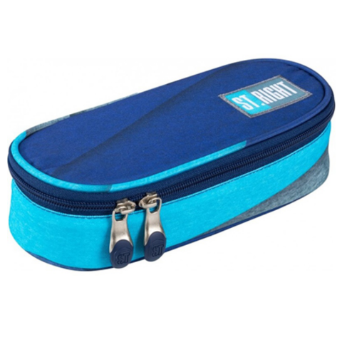 Ezen a kiváló minőségű, St.Right márkájú ovális tolltartón a kék szín különböző árnyalata található meg és a színek összhangja kiválóan harmonizálnak egymással így egy divatos iskolaszerrel egészítheted ki gyermeked felszerelését. A tolltartóban rengeteg írószer elférhet, 23cm-es hosszúságának köszönhetően akár egy körző, vonalzó is helyet kaphat a