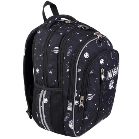A NASA felirattal, és különféle planétákkal díszített iskolatáska már önmagában is biztos sok világűr rajongó kis diák szívét megdobogtatja, ám a hátizsák különlegessége leginkább a kényelmes és praktikus kialakításában rejlik. A táska párnázott kialakítású hát részének, valamint az állítható és széles vállpántoknak köszönhetően a gyerekek szám