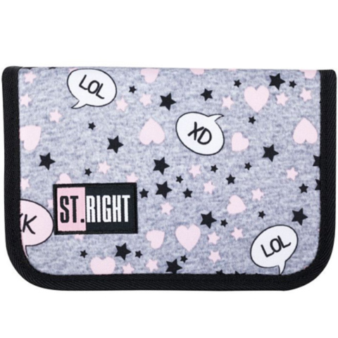 Lányok számára remek választás ez a mutatós tolltartó, melynek két kihajtható füle elegendő helyet biztosít az írószereik tárolására és hordozására. A tárolásban a gumis pántok lesznek segítségükre, ahol kiegészítőiket is elhelyezhetik. A St.Right Slang mintás tolltartó kiváló minőségű, így hosszú évekig a gyerekek társa lehet az iskolai tanórákon, nyitá