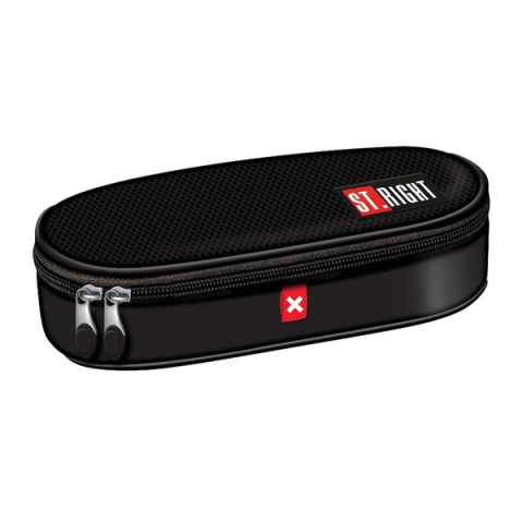 Az X White ovális tolltartó PC01 (23x9,5x6 cm) tökéletes választás minden iskolás számára, aki a letisztult, modern stílust kedveli. A fekete alapszínt diszkrét mintázat és egy karakteres piros-fehér X logó teszi egyedivé, amit a ST.RIGHT márkajelzés egészít ki. Ez a sportos és elegáns dizájn bármilyen iskolatáskához illik, így gyermeked stílusos kiegészítőt