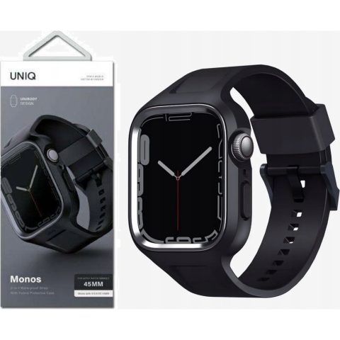 Uniq Monos Apple Watch 44/45mm hibrid szíj + tok, fekete (UNIQ734)