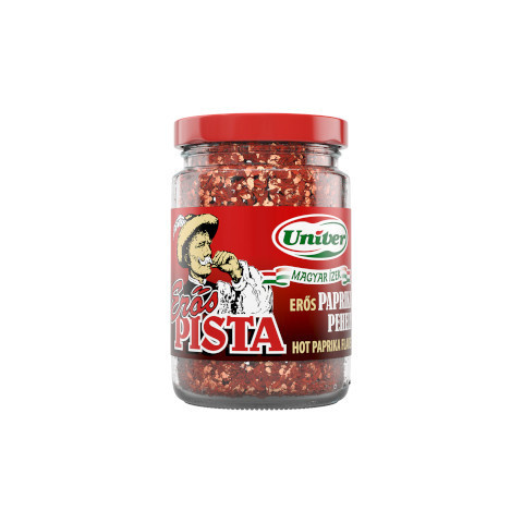 Univer Erős Pista 55 g paprika pehely Az Univer Erős Pista 55 g paprika pehely egy intenzív csípős ízű fűszer a magyar konyha kedvelőinek. A praktikus, 55 g-os kiszerelés gyorsan hozzáadható ételeidhez, hogy pikáns karaktert adjon minden fogásnak. F