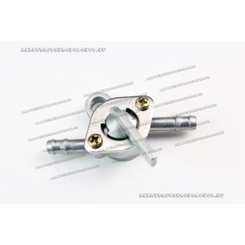 Univerzális, kézi működtetésű üzemanyagcsap 4 ütemű és 2 ütemű robogókhoz, kismotorokhoz, quadokhoz és egyéb kisgépekhez. Csavarozható kivitel, 6 mm-es benzincsőcsonkokkal és két csatlakozással, ideális megoldás szivárgó, elöregedett vagy beragadt gyári ü
