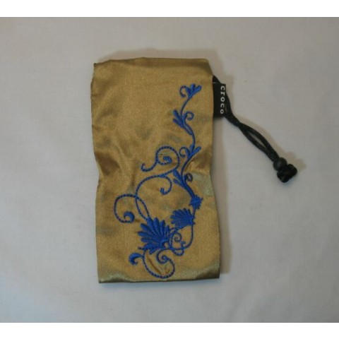 1 kép Univerzális Nyakpántos tok, álló Croco (8x13 cm), kék-arany - virágos*
