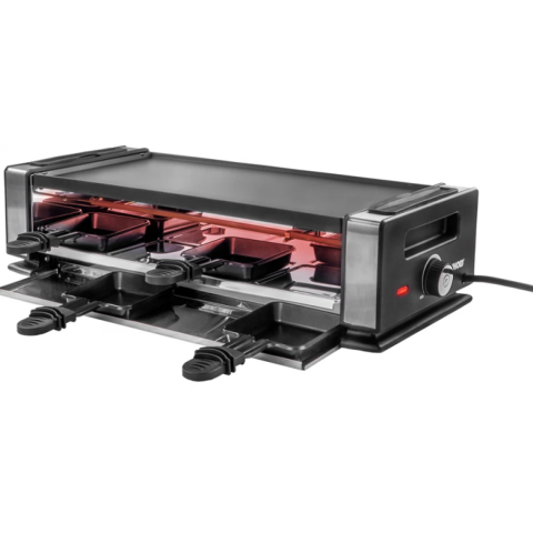 - Raclette grill 8 fő részére - Tartó az opcionális elszívó burkolathoz - Nagy, forgó grilllap öntött alumíniumból a könnyű tisztítás érdekében, Greblon bevonattal - Grilllap sima és hullámos felül...