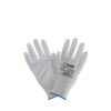 Poliészter alapanyagra ujjbegyig mártott védőkesztyű, vékony poliuretán mártással és gumírozott mandzsettával.Páranként csomagolva Minősítés: CE KAT II.