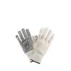 Pamut - poliészter tenyerén PVC pöttyökkel ellátott védőkesztyű, gumírozott mandzsettával.