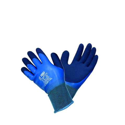 Poliészter alapanyagra csuklóig latexbe mártott védőkesztyű, tenyerén vastag habosított latex mártással, gumírozott mandzsettával. .