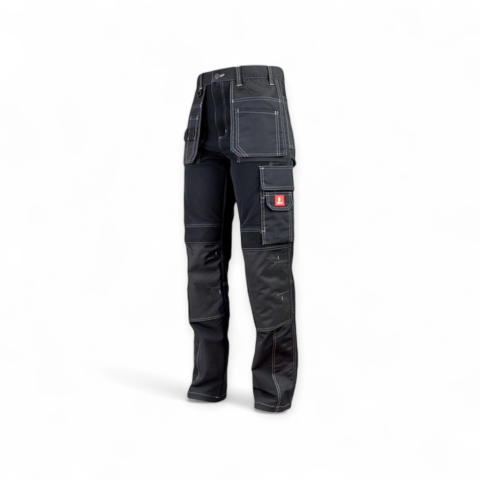 Egyenes szabás, funkcionális kialakítás, OXFORD anyaggal erősített RIPSTOP anyag. - fényvisszaverő elemek - mély, rávarrt első zsebek - lengő zsebek (nem levehető) - rávarrt farzsebek - zollstock számára kialakított zseb - rávarrt zsebfedős oldalzseb - te