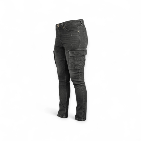 Cargo nadrág, karcsúsított szabás, rugalmas farmer anyag koptatásokkal - gumírozott hátsó derékrész a tökéletes illeszkedésért - két klasszikus első zseb - rávarrt farzsebek - zsebfedős többfunkciós oldalzsebek