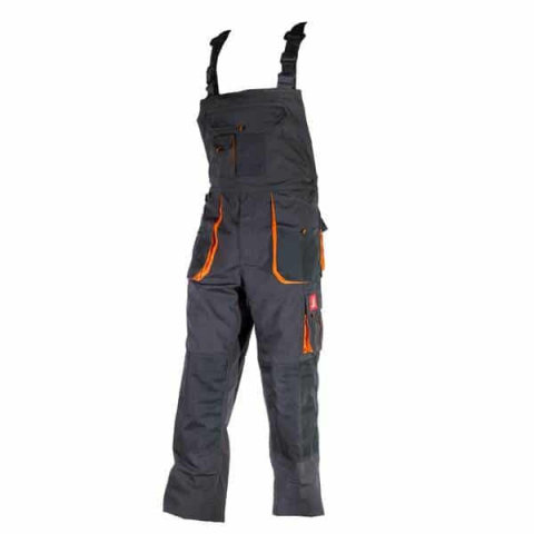 Minőségi anyagból, modern szabással készült munkásnadrág erősített térd résszel fekete/narancssárga színben. Urgent-A Kantáros Nadrág Urgent kertésznadrág Modern szabású munkaruha Minőségi anyagból: 280 gr/m2 - 35% pamut, 65% poliészter Erősítések: