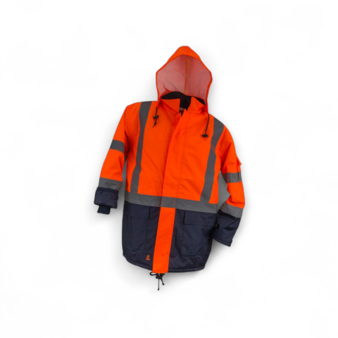 Egyenes szabás, funkcionális kialakítás, 300D OXFORD anyagból PU bevonattal. - fényvisszaverő szalagok - cipzáras záródás, cipzárfedő - rejtett kapucni - két zsebfedős első zseb - egy zsebfedős zseb a bal felkaron - rugalmas mandzsetták - vízlepergető bev