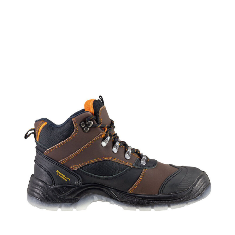 Felsőrész:vízálló Crazy Horse marhabőr, minimum 2,2 mm Bélés:szövet, párnázott bokarész Talpbetét:nedvességelvezető szövet Talp:csúszásmentes, olajálló, antisztatikus, energiaelnyelő sarok, kopásálló orrborítás, kétrétegű TPU/PU, a külső talp TPU, mely
