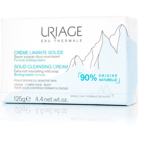 Szappan - érzékeny, zsíros, normál, kombinált, száraz és érett bőrtípushoz ajánlott, hidratáló és tápláló, mindennapi használatra, hatóanyaga glicerin és tejfehérje, szilikonmentes és szulfátmentes, dermo, nők számára, 125 g-os kiszerelésben Az Uriage Hygiène Solid Cleansing Cream ideális választás azok számára, akik gyengéd és hatékony tisztítószappant keresnek az érzékeny bőr mindennapi ápolásához. Az Uriage termálvízzel és természetes