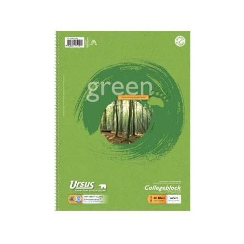 Teljes URSUS GREEN Spirálfüzet A/4 80lap Collegeblock 100% Recy., kockás termékleírás