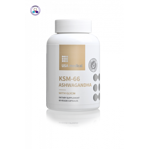 1 kép USA Medical Ashwagandha kapszula 350mg glicinnel KSM-66 ASHWAGANDHA® 60 db