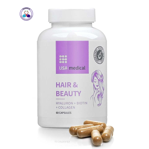 USA medical Hair and Beauty Hajvitamin – Biotint, hialuronsavat, vitaminokat és növényi kivonatokat tartalmazó étrend-kiegészítő kapszula.
