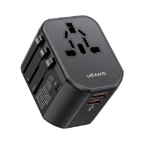 USAMS 2xUSB-A/USB-C T59 univerzális utazó töltő - Fekete (20W)