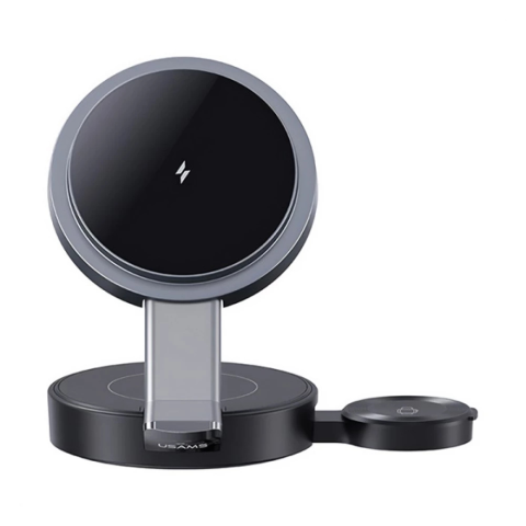 1 kép USAMS asztali töltő 3in1 (15W. wireless. gyorstöltő. Airpods. Apple Watch töltő) FEKETE