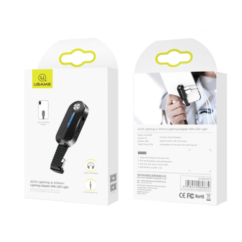 1 kép USAMS SJ358LN01 Ligtning + Jack adapter LED világítással fekete (1343866) (SJ358LN01)
