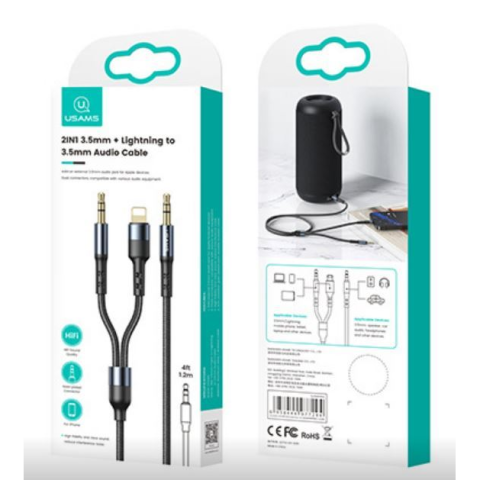 1 kép USAMS SJ554YP01 2az1-ben 3.5mm jack - 3.5mm jack/Lightning kábel (SJ554YP01)