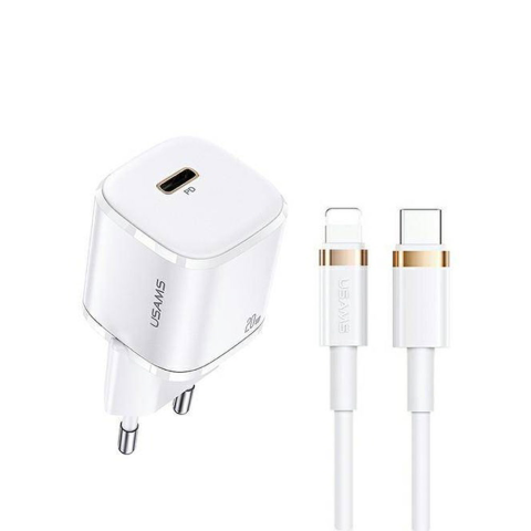 1 kép USAMS T36 Prémium Hálózati USB-C töltő (5V / 3A) + Lightning kábel Fehér (USA000844)