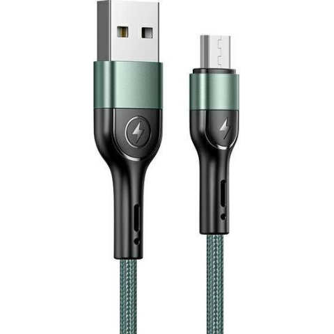 1 kép USAMS U55 adatkábel (USB - microUSB, 2A, gyorstöltő, 100cm, cipőfűző) SÖTÉTZÖLD (SJ450USBSG02) (6958444913001)